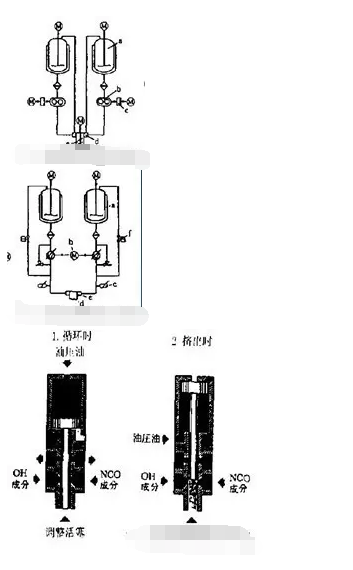 采用將活性氫成分和異氰酸酯共同攪拌混合、注模固化的方法,可制造許多聚氨酯橡膠制品該法使用圖1所示的低壓混合機和圖2所示的高壓混合機 高壓混合機,通過圖3所示的沖撞混臺機構用于高速反應系統。需要后硫化成型品可用烘箱進行熱處理