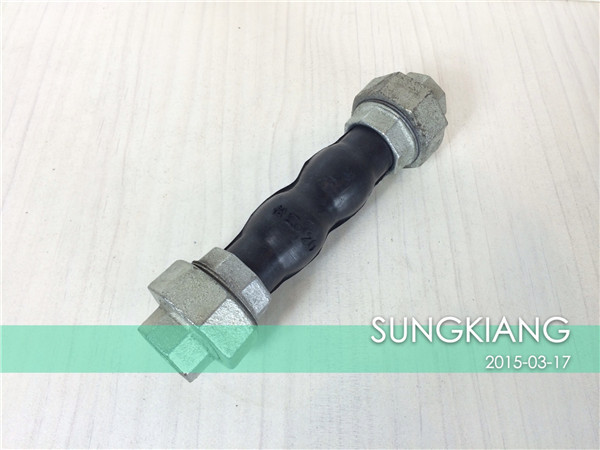 絲扣連接橡膠接頭*般是為連接口徑較小管道設計,方便快捷。和其他橡膠接頭*樣,針對不同介質選用不同橡膠材料。