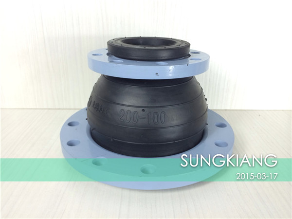 同心異徑橡膠接頭又稱作異徑管道減振器、膨脹節(jié)、避震喉、軟接頭,是金屬管道的柔性聯(lián)接器,由內(nèi)膠層、錦綸簾子布增強(qiáng)、外膠層復(fù)合的橡膠球體和淞套金屬法蘭組成.現(xiàn)引進(jìn)*外先進(jìn)生產(chǎn)工藝,制作過程中內(nèi)層受到高壓力,錦綸簾子布和膠層得到更好的結(jié)合,比普通型可曲撓橡膠接頭的工作壓力更高,質(zhì)量更好.它是*種高彈性、高氣密性、耐介質(zhì)性和耐氣候性的管道接頭.